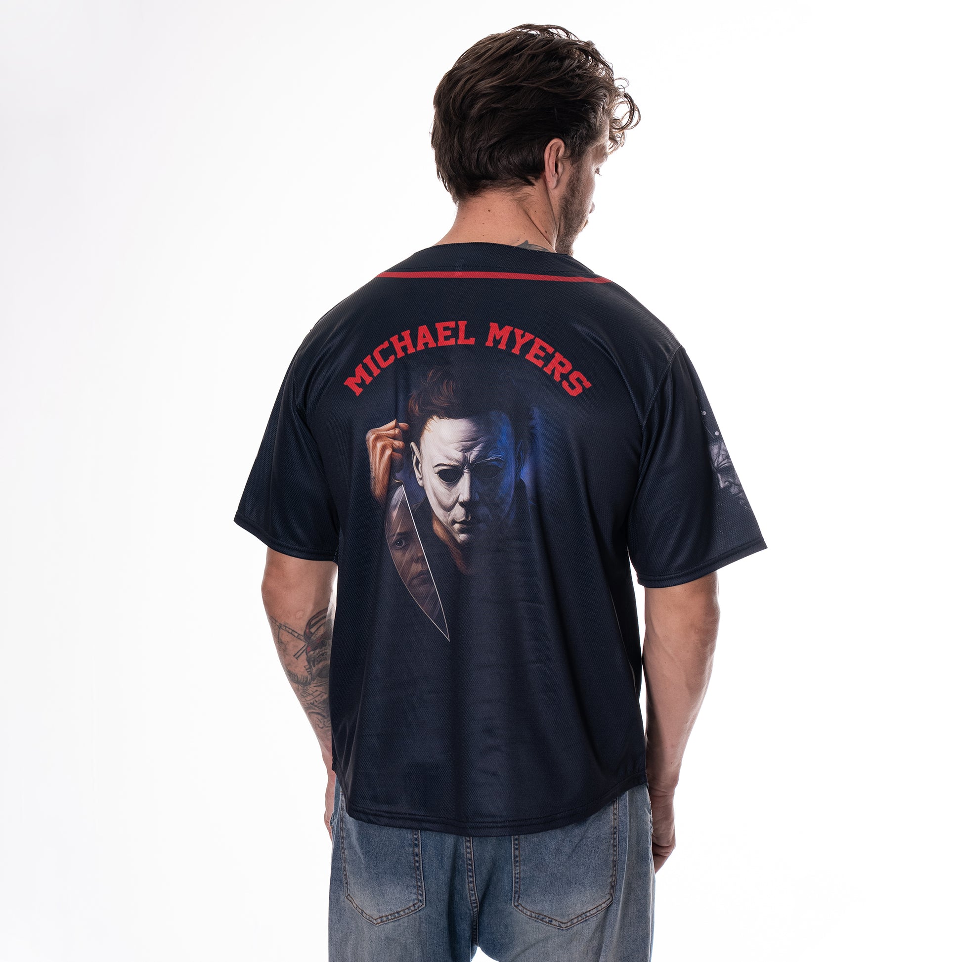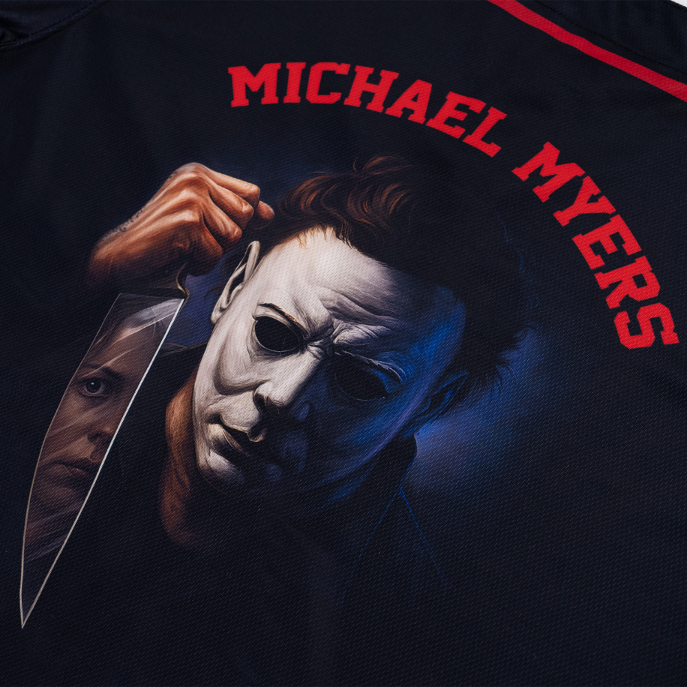 This jersey is fully sublimated with bold, lasting graphics that won’t fade, crack, or peel. Designed for comfort and repeat wear, it’s the ultimate piece for fans of Halloween Michael Myers.